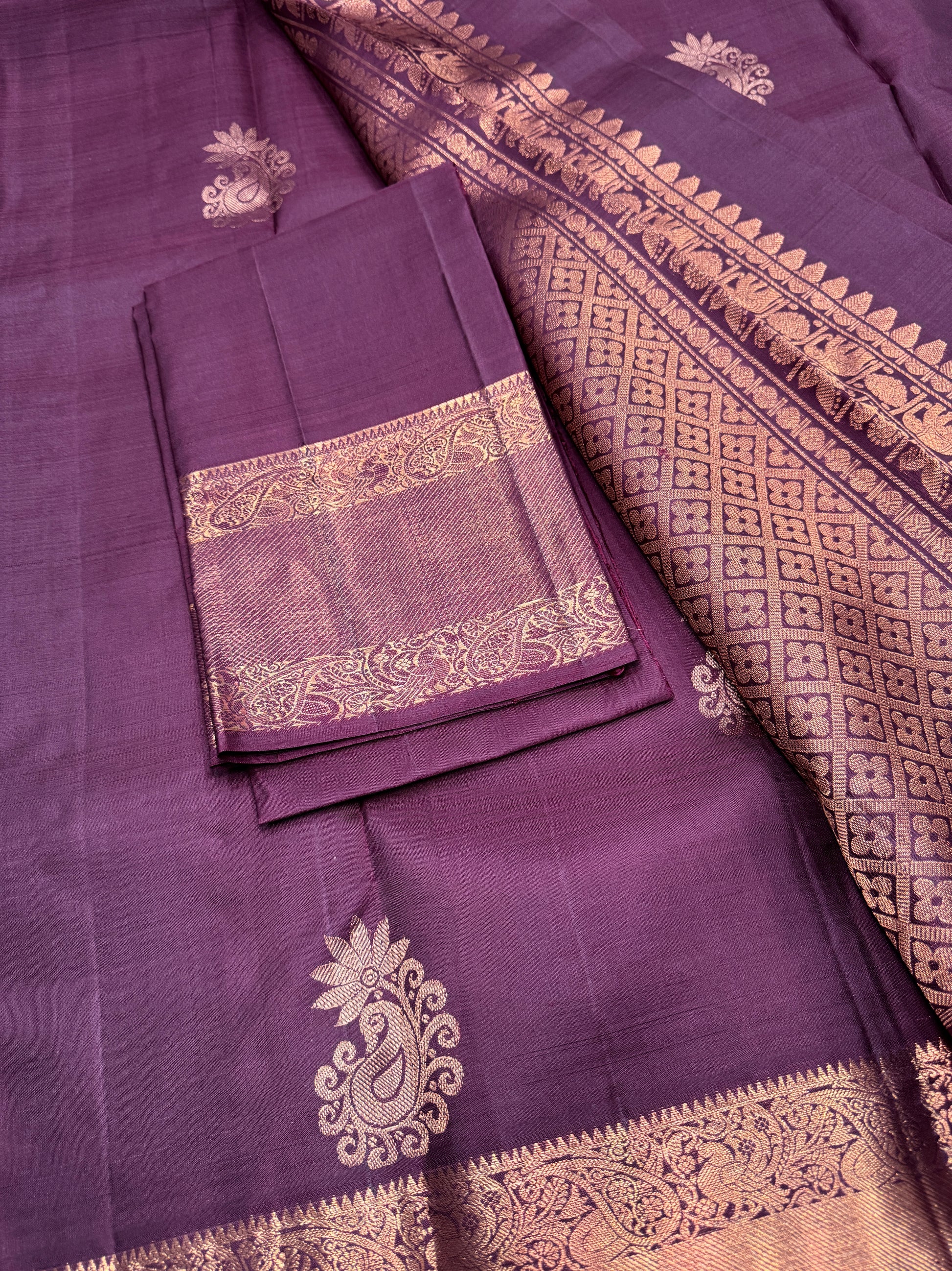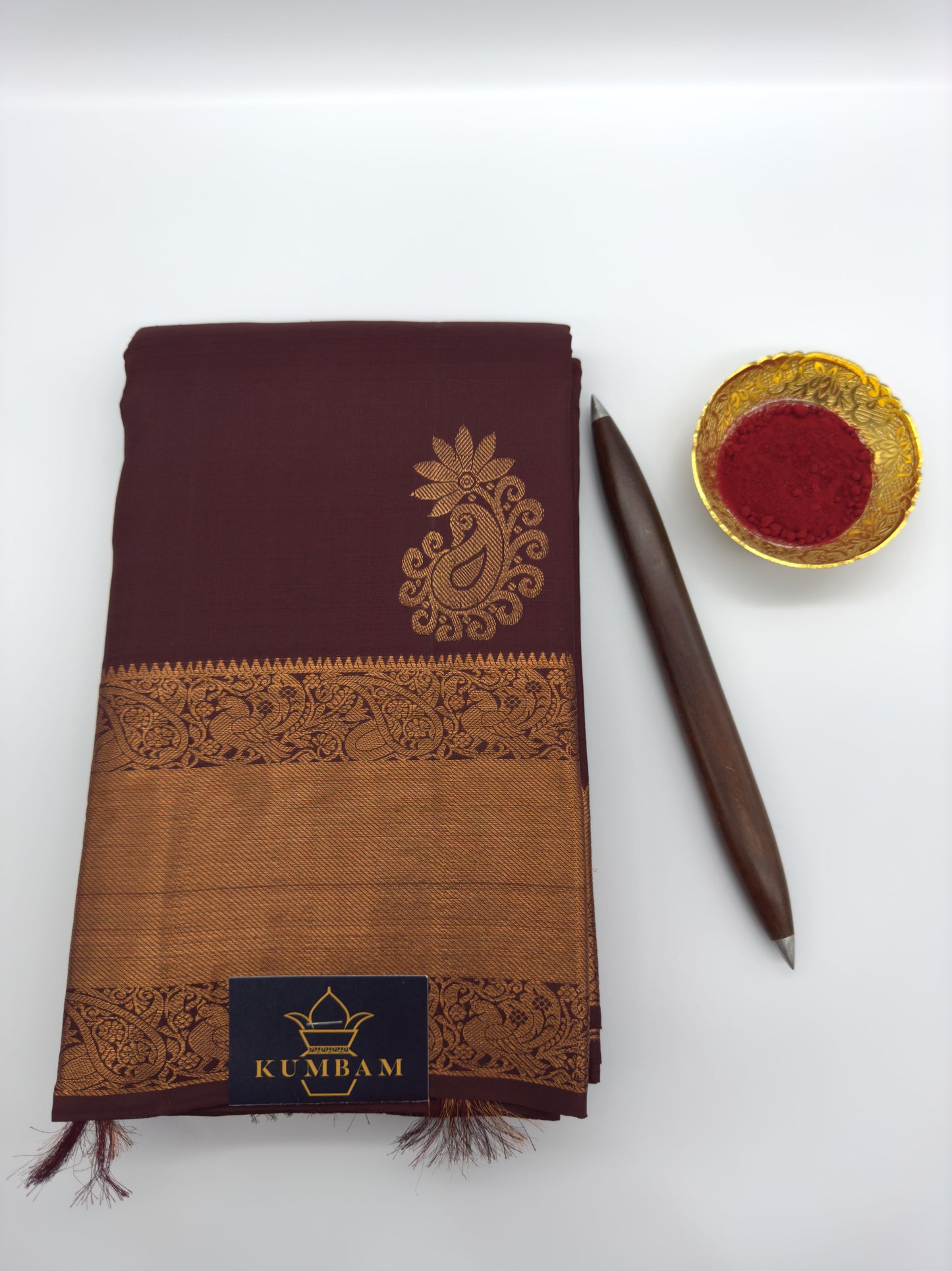 Cinnamon Brown Kanchipuram Silk Saree In Copper Zari