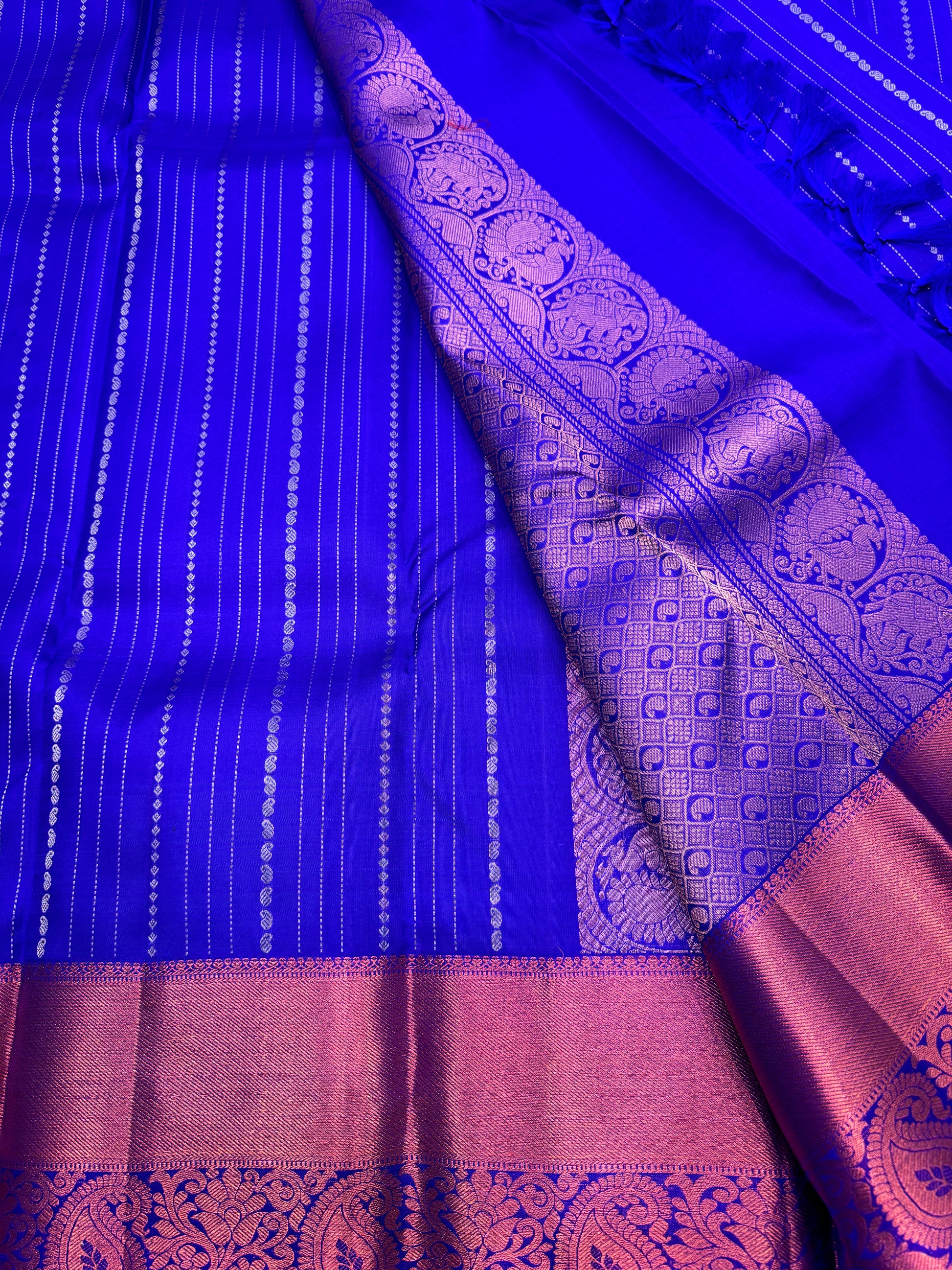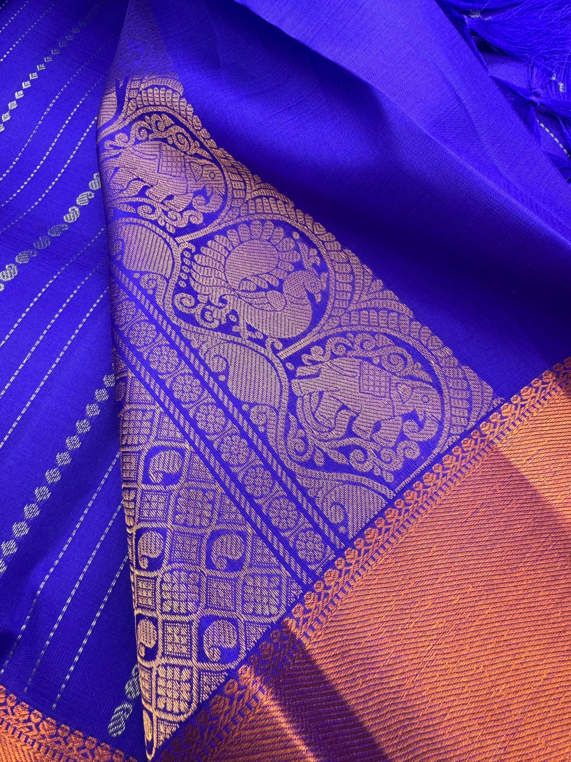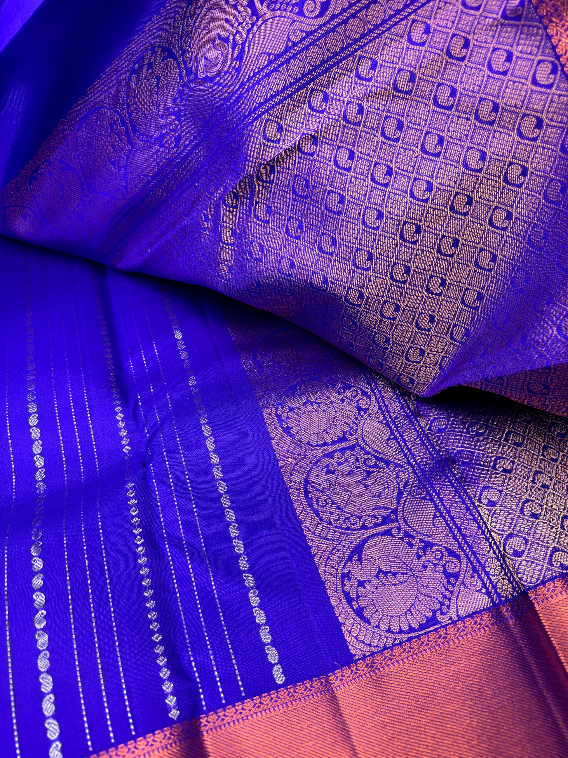 Cobalt Blue Kanchipuram Silk Saree in Copper Zari