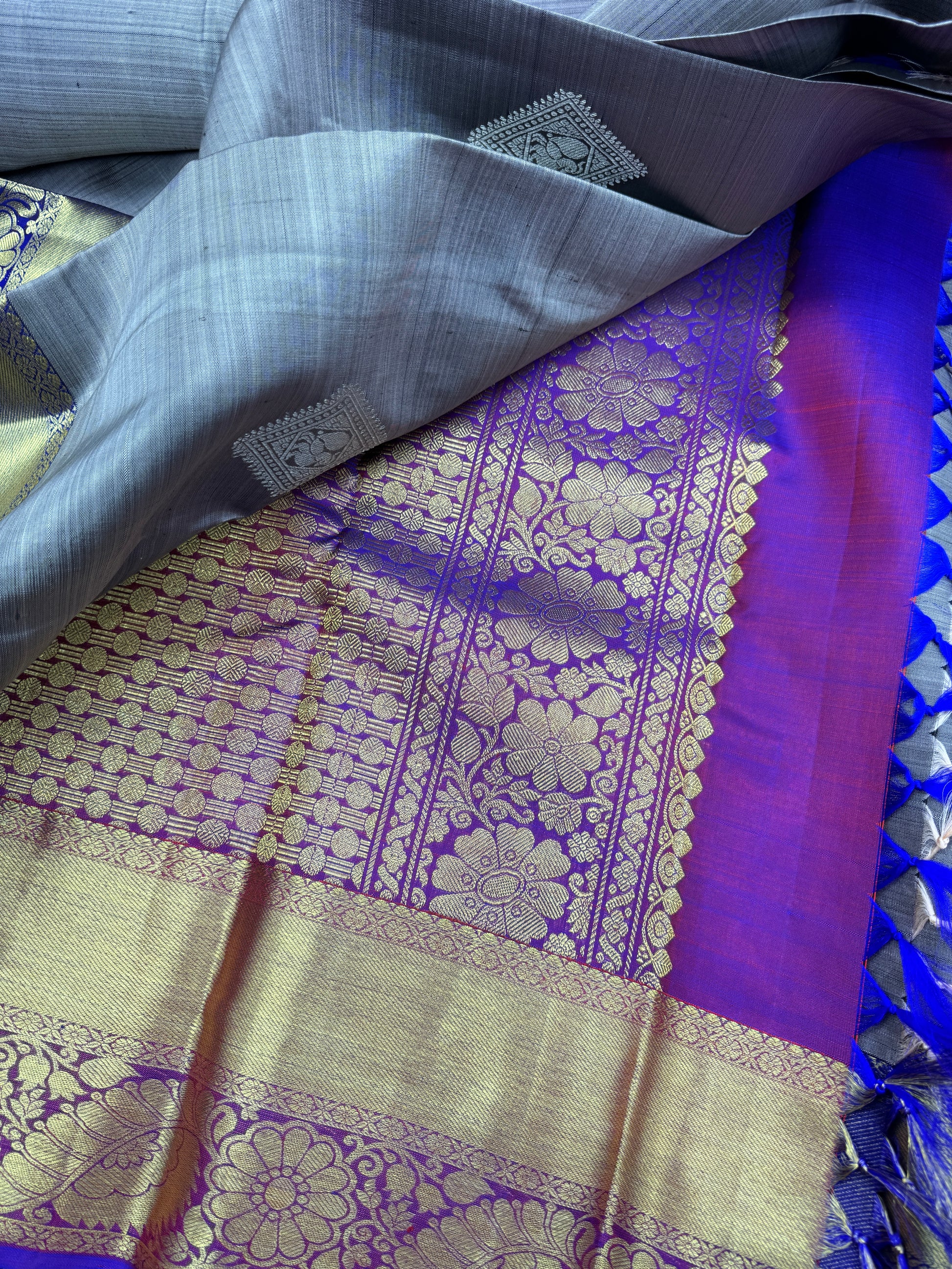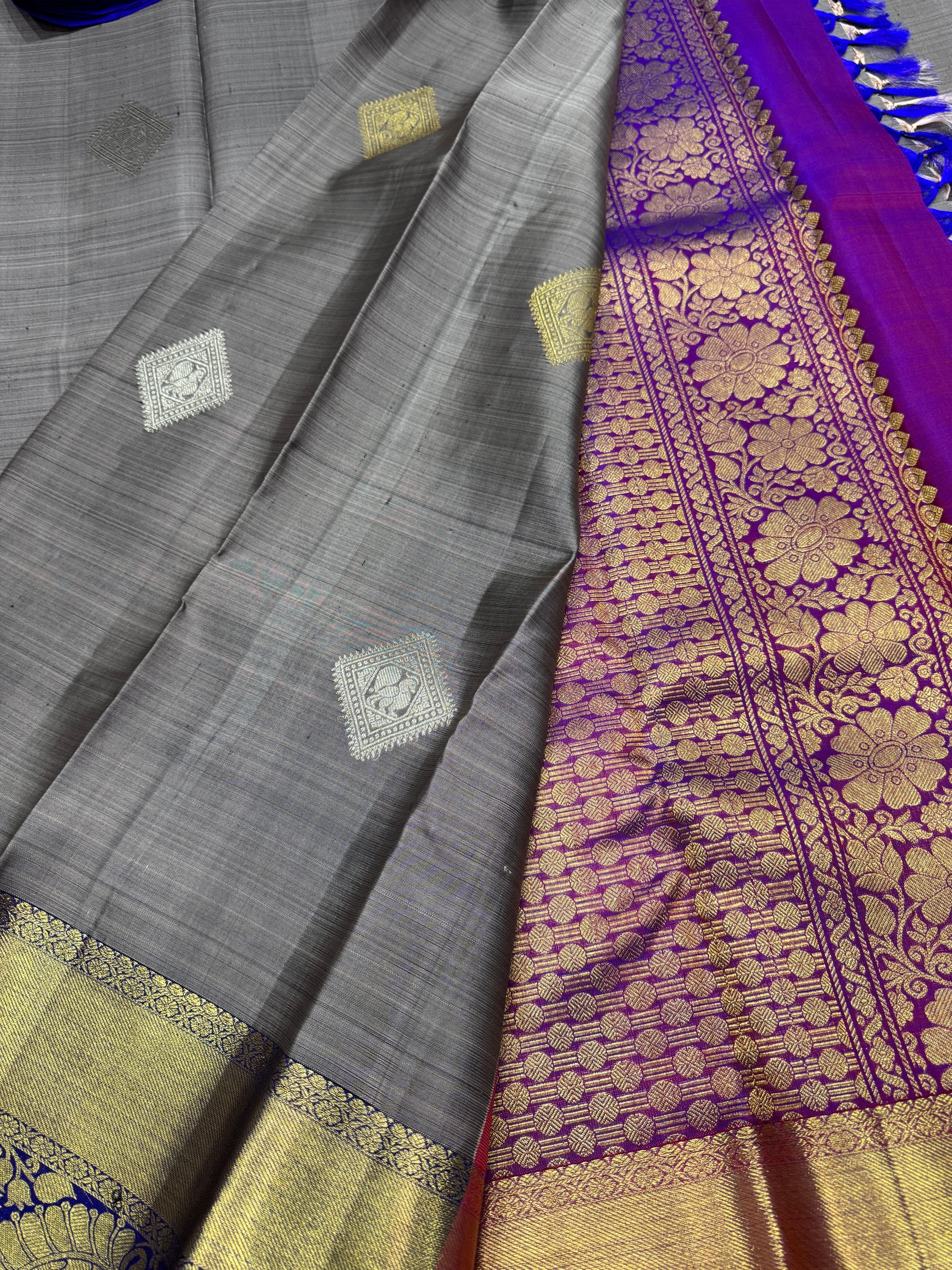 Grey Kanchipuram Silk Saree With Contrast In Gold Zari