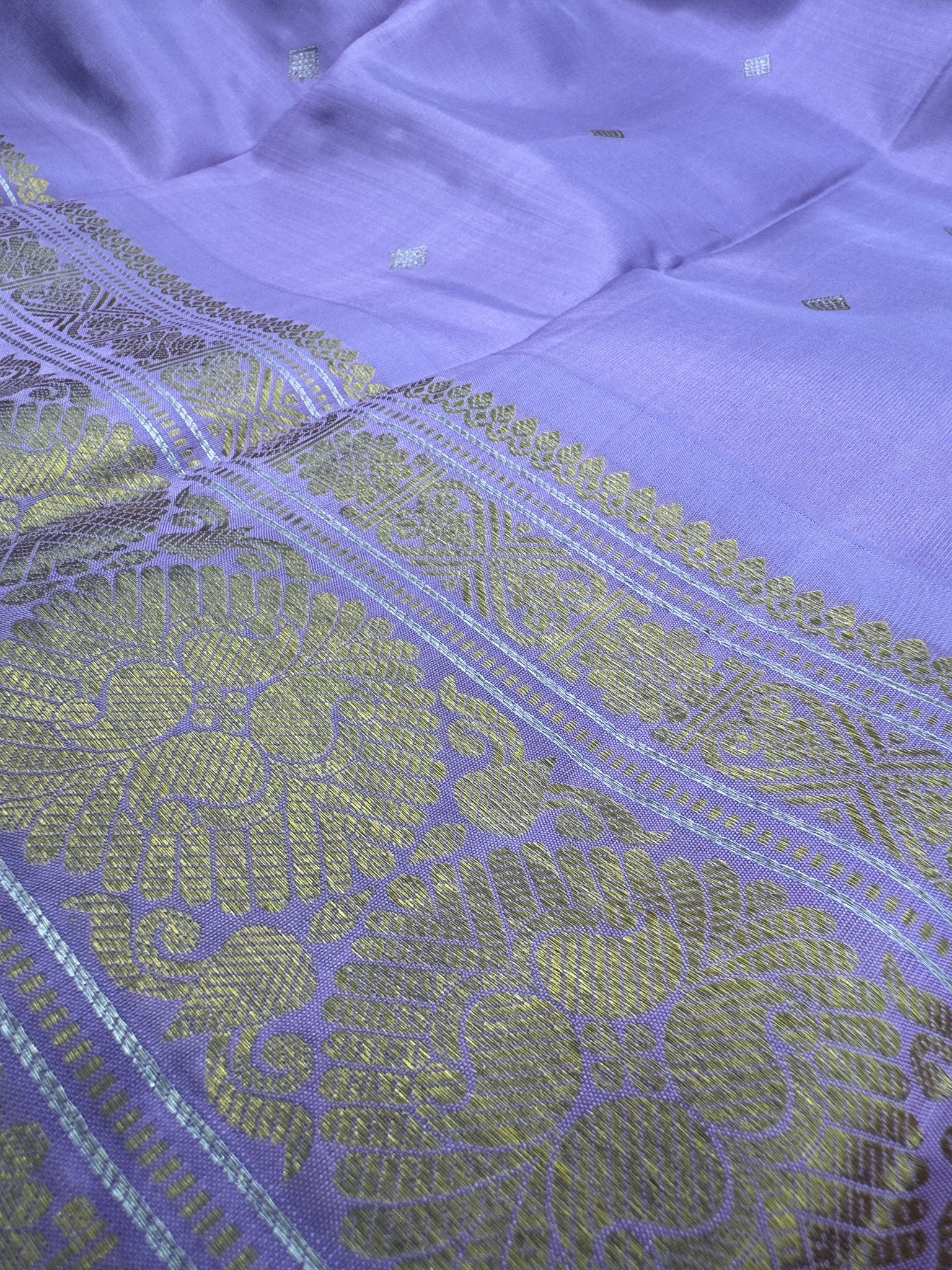 Lavender Kanchipuram Silk Saree With Pure Gold And Silver Zari