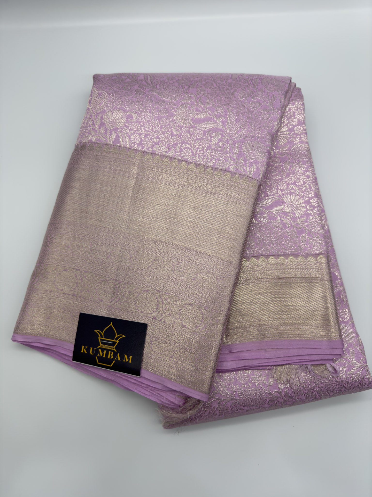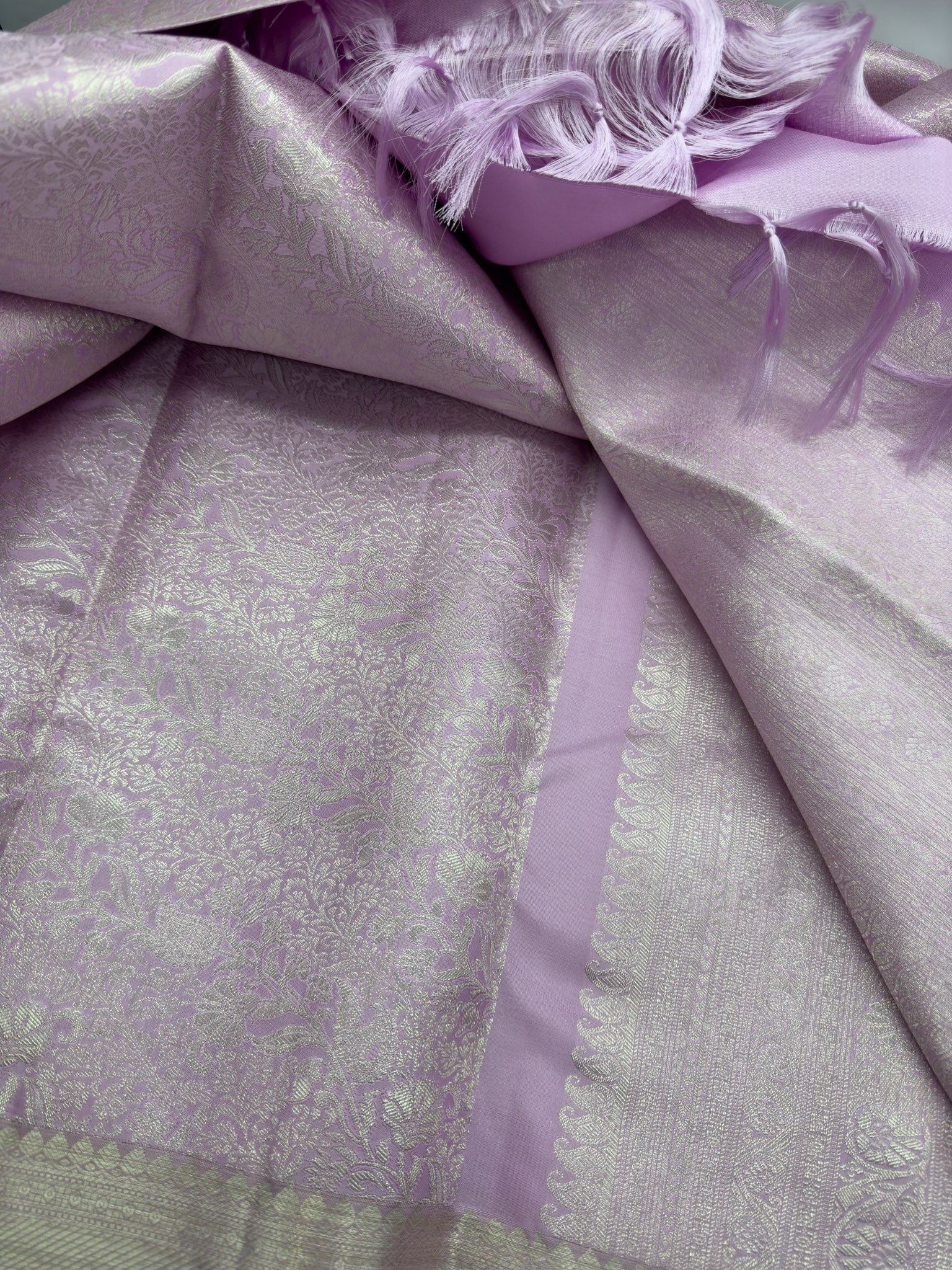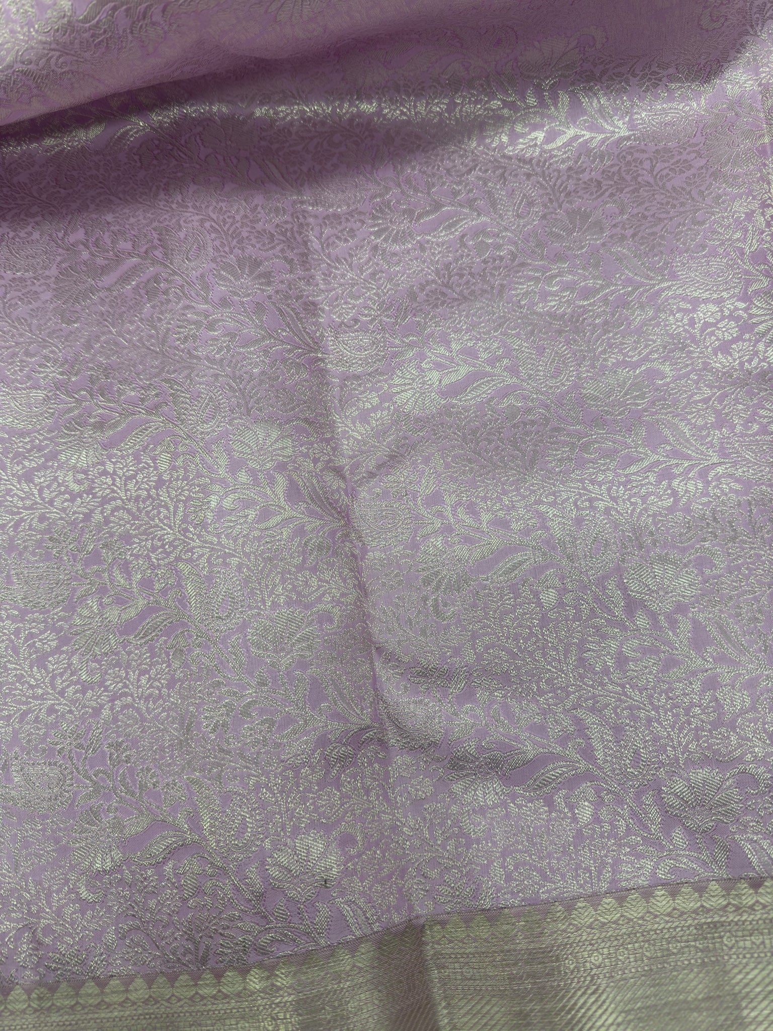 Lavender Kanchipuram Silk Saree With Silver Zari