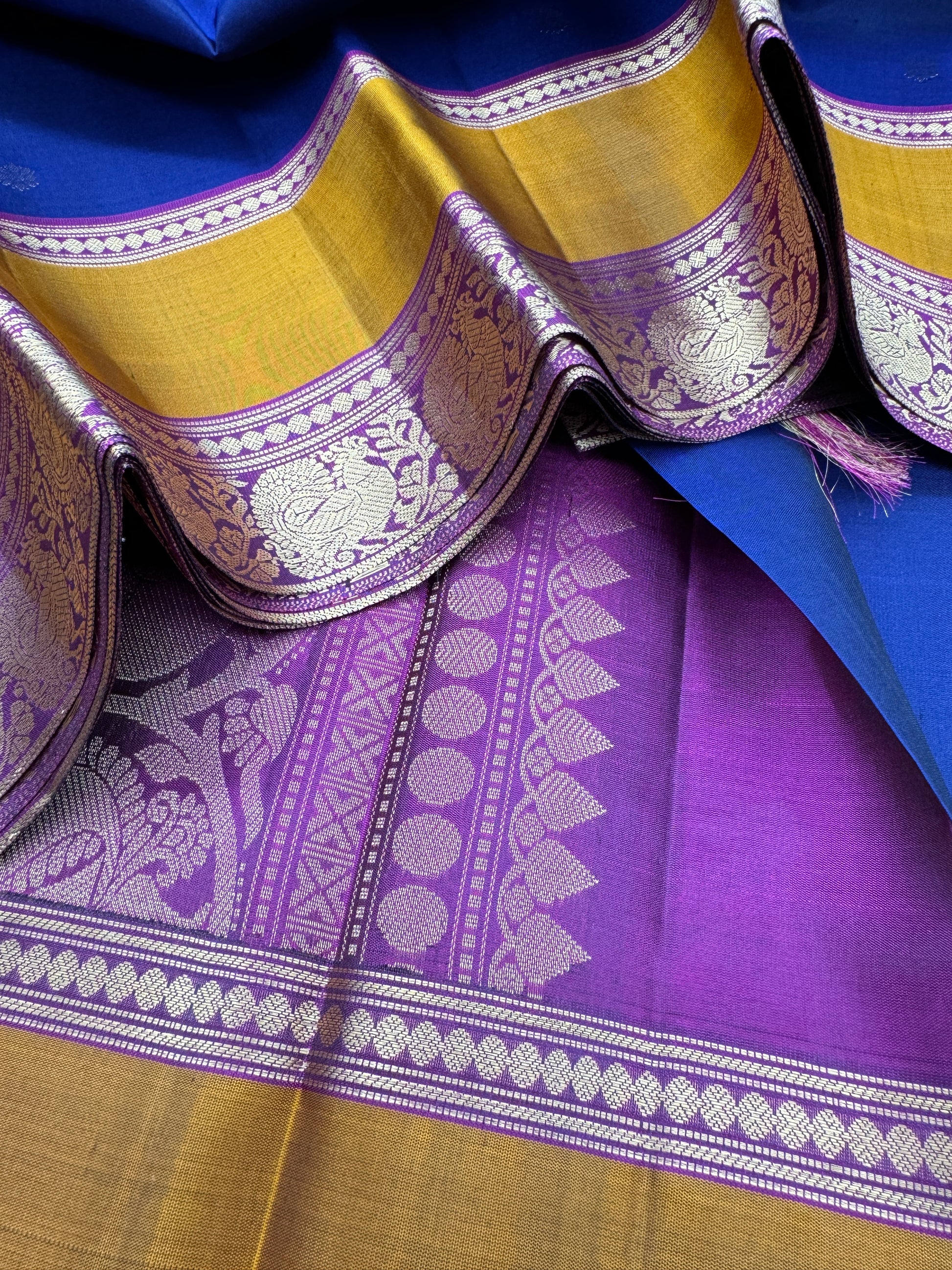- Elegant Design: The midnight blue color paired with the Retta Pettu border provides a sophisticated and timeless appeal.