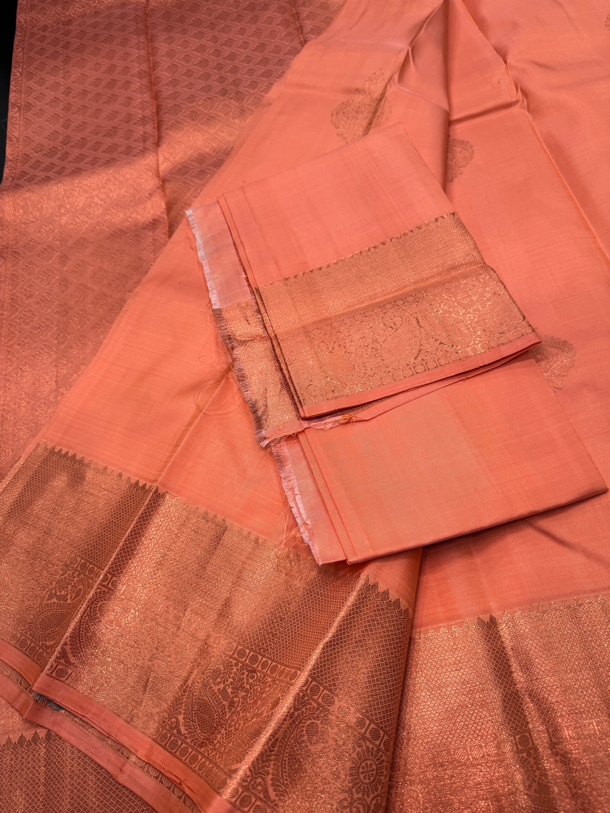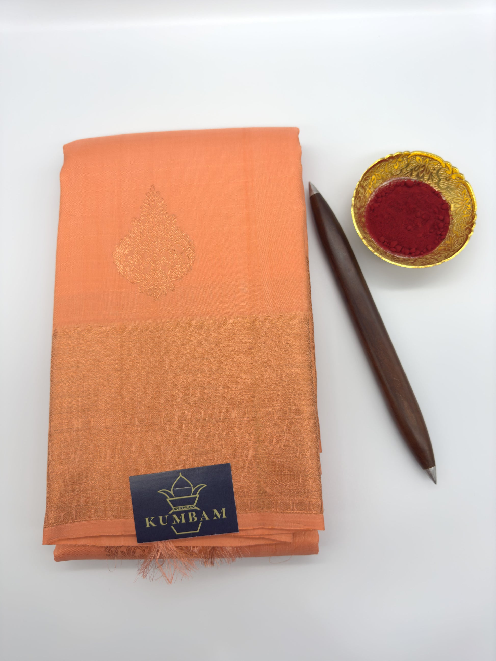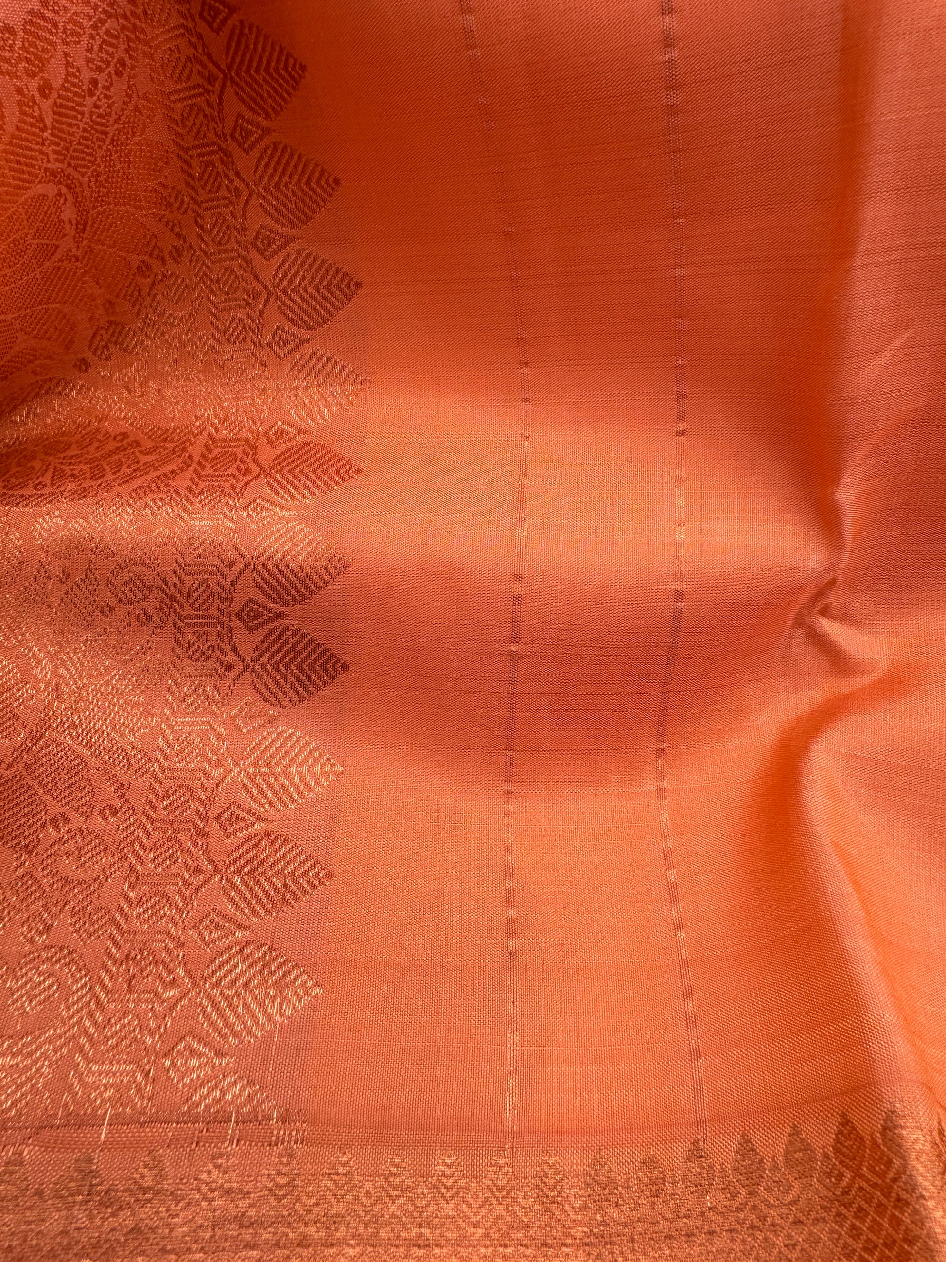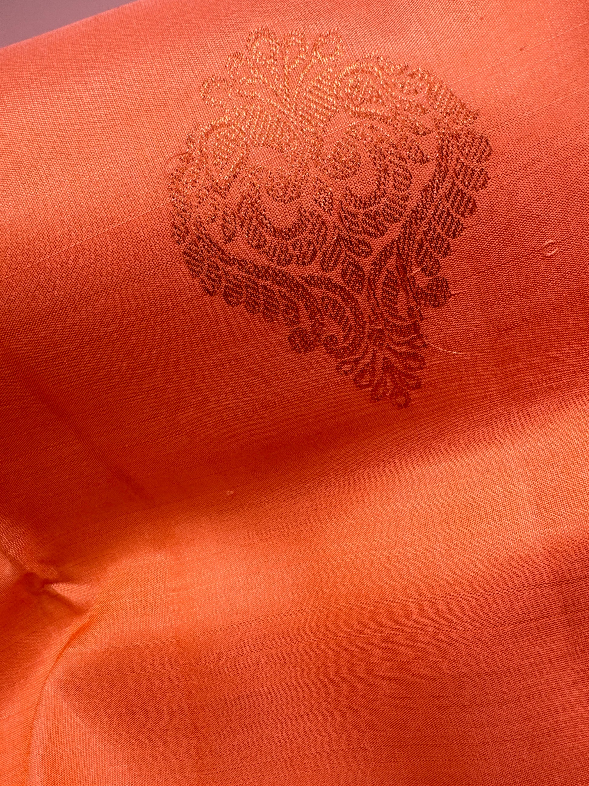 Orange Sorbet Kanchipuram Silk Saree In Copper Zari