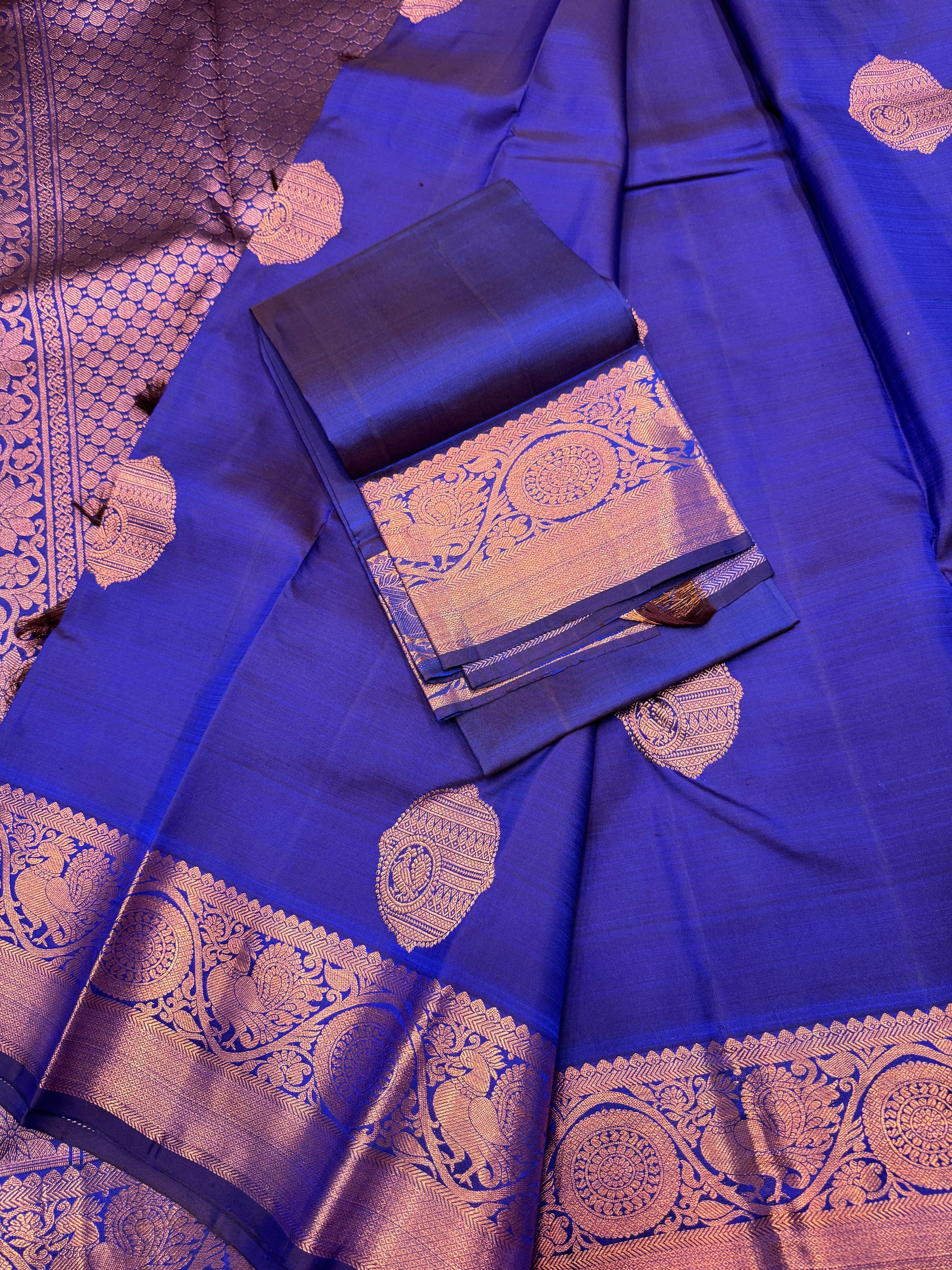 Royal Blue Kanchipuram Silk Saree With Copper Zari