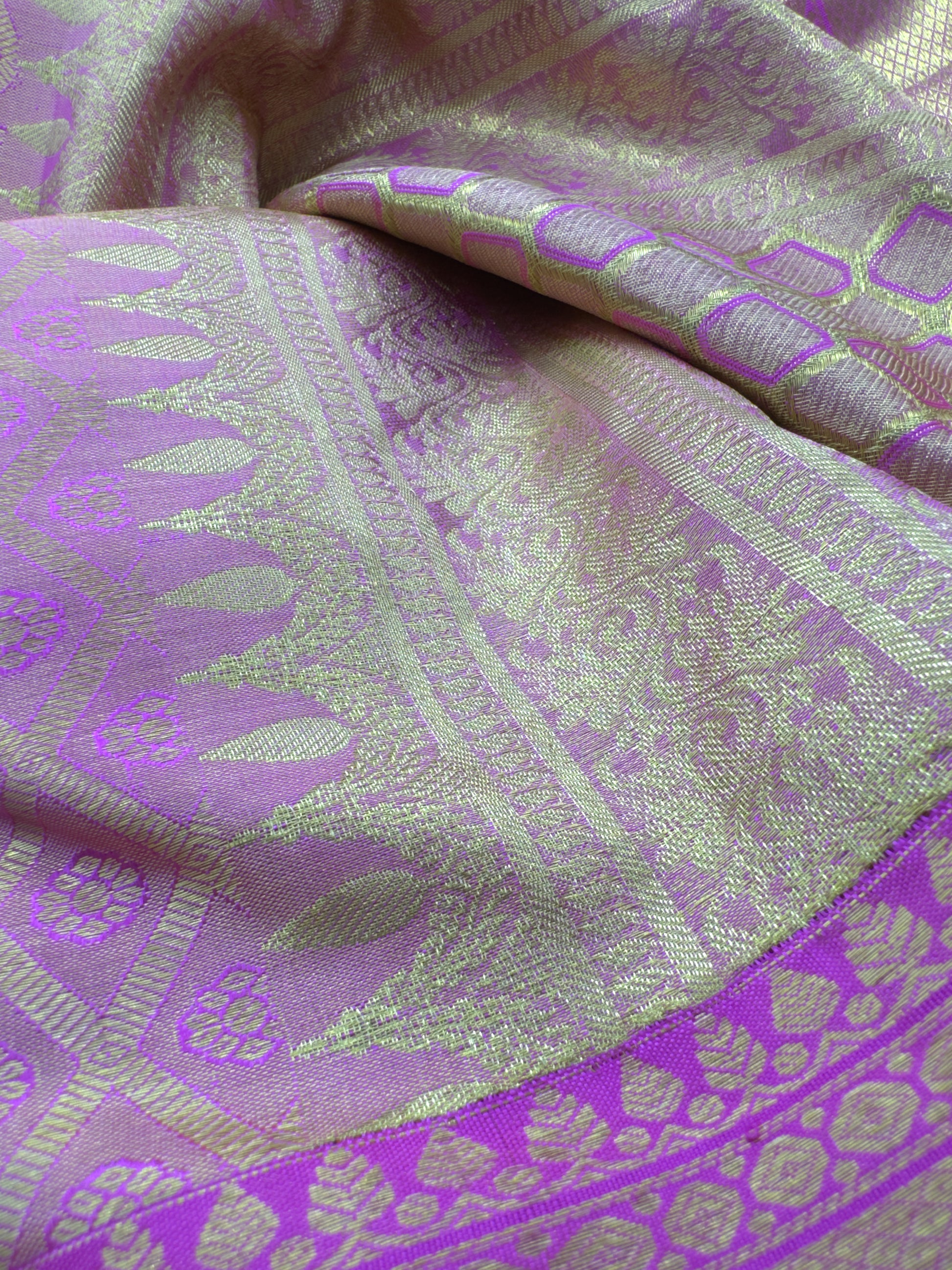 Immerse yourself in the timeless elegance of our Seafoam Green Pure Tissue Silk Saree, meticulously crafted for those who appreciate the finer details in fashion. This exquisite piece embodies grace and tradition, featuring a radiant seafoam green hue that captures the essence of serene elegance. The saree is designed from the finest tissue silk, a fabric renowned for its luxurious sheen and lightweight texture, ensuring not only an illustrious sheen but also unrivaled comfort.
